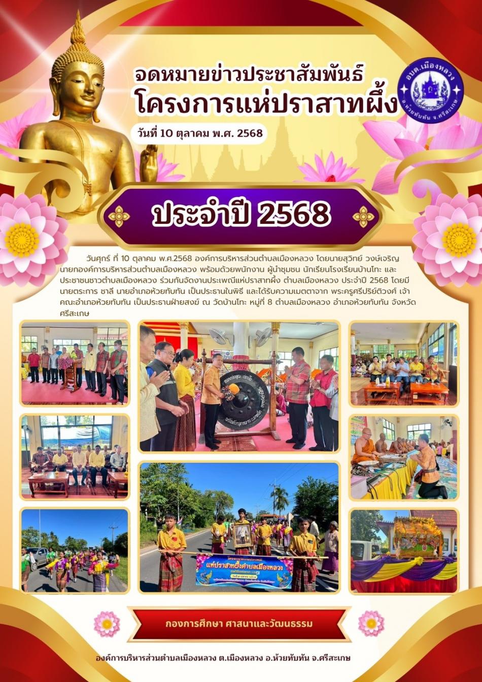 โครงการจัดงานประเพณีแห่ปราสาทผึ้ง ตำบลเมืองหลวง ประจำปี 2568[10 ตุลาคม 2568]