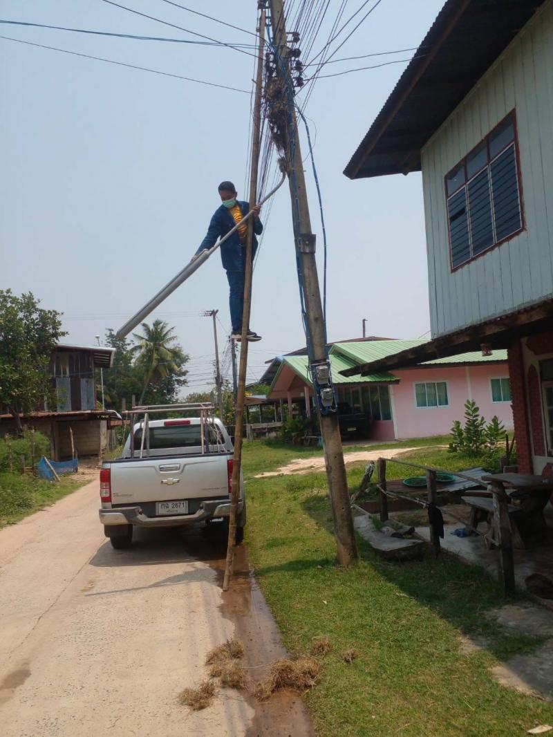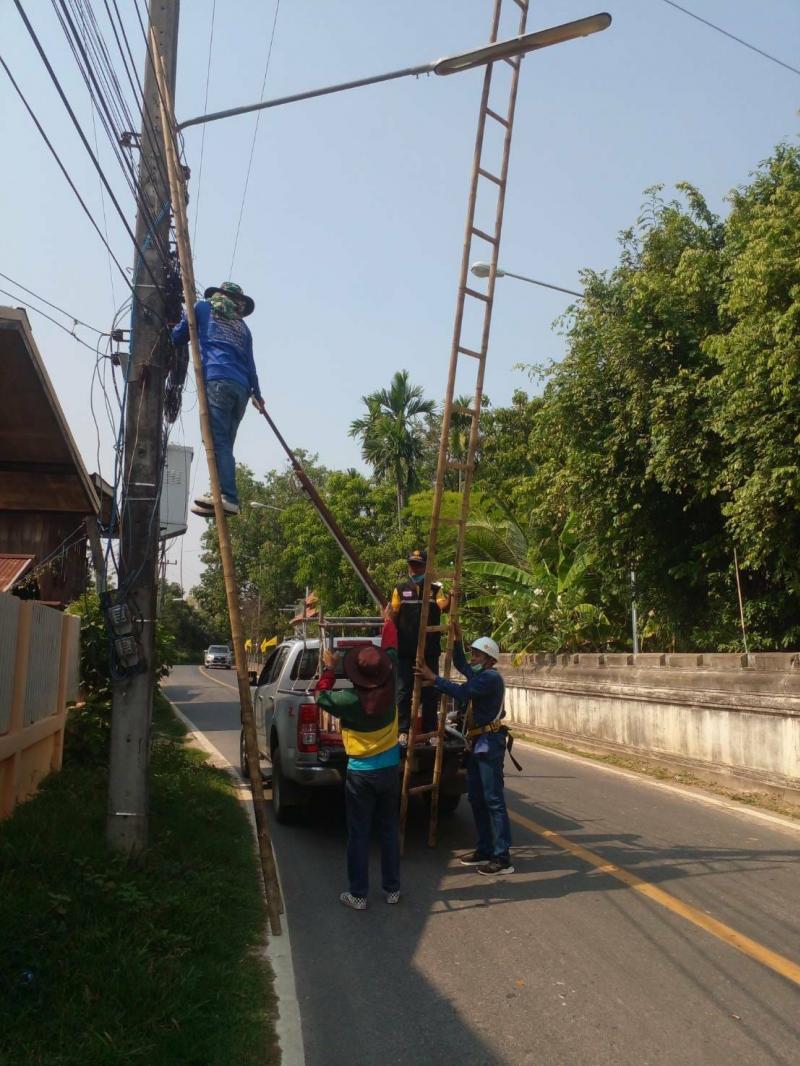 วันที่ 8/4/2565 นายสุวิทย์ วงศ์เจริญ นายกองค์การบริหารส่วนตำบลเมืองหลวง มอบหมายให้กองช่างดำเนินการซ่อมแซมไฟฟ้าสาธารณะส่องสว่าง บ้านเมืองน้อย ม.6 ตำบลเมืองหลวง