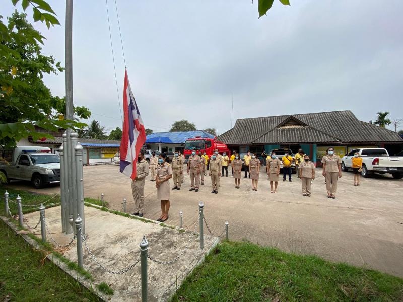 รายละเอียด : คณะผู้บริหาร พนักงานส่วนตำบลและพนักงานจ้าง ได้ร่วมกันเข้าแถวเคารพธงชาติ ณ องค์การบริหารส่วนตำบลเมืองหลวง