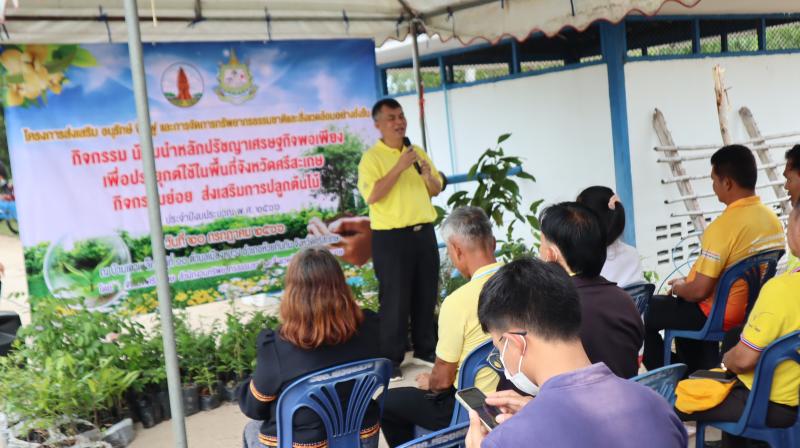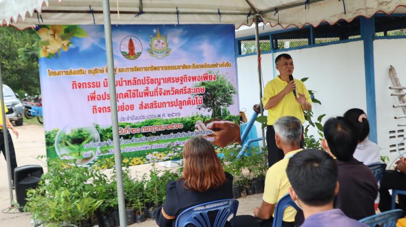 วันที่ 20 กรกฎาคม พ.ศ. 2567 องค์การบริหารส่วนตำบลเมืองหลวง นำโดยนายสุวิทย์ วงศ์เจริญ นายกองค์การบริหารส่วนตำบลเมืองหลวง คณะผู้บริหาร หัวหน้าส่วนราชการ พนักงานเจ้าหน้าที่ องค์การบริหารส่วนตำบลเมืองหลวง ร่วมกับสำนักงานทรัพยากรธรรมชาติและสิ่งแวดล้อมจังหวัดศรีสะเกษ จัดกิจกรรมน้อมนำหลักปรัชญาเศรษฐกิจพอเพียง เพื่อประยุกต์ใช้ในพื้นที่จังหวัดศรีสะเกษกิจกรรมย่อย ส่งเสริมการปลูกต้นไม ประจำปีงบประมาณ พ.ศ. 2566 ณ บ้านเตาเหล็ก ม.10 ต.เมืองหลวง อ.ห้วยทับทัน จ.ศรีสะเกษ โดยมีประชาชนเข้าร่วมโครงการฯ จำนวน 80 คน