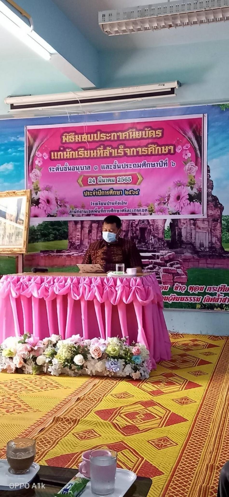 24/3/2565 นายสุวิทย์ วงศ์เจริญ นายกองค์การบริหารส่วนตำบลเมืองหลวง เป็นประธานเปิดงานพิธีมอบประกาศนียบัตรนักเรียนที่สำเร็จการศึกษาระดับอนุบาล 3 และชั้นประถมศึกษาปีที่ 6 ณ โรงเรียนบ้านจังเอิน [24 มีนาคม 2565]