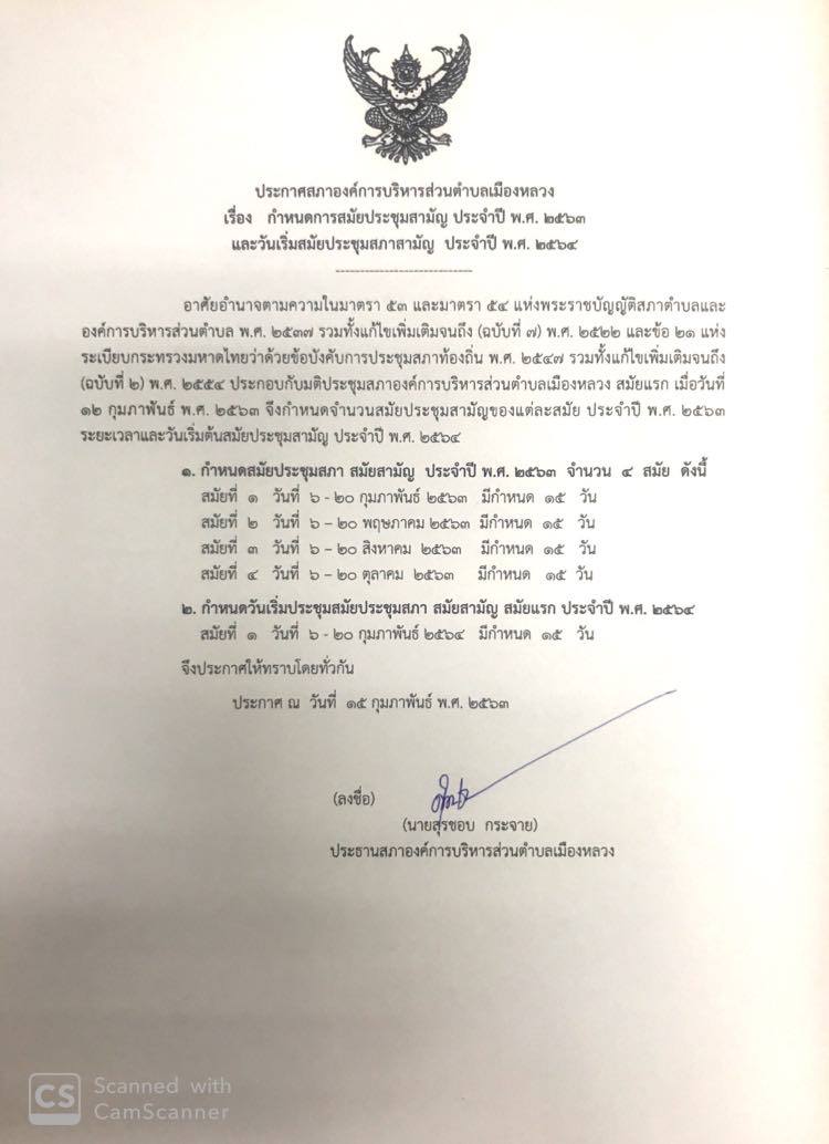 ประกาศกำหนดสมัยประชุมสามัญ ประจำปี พ.ศ. 2563
