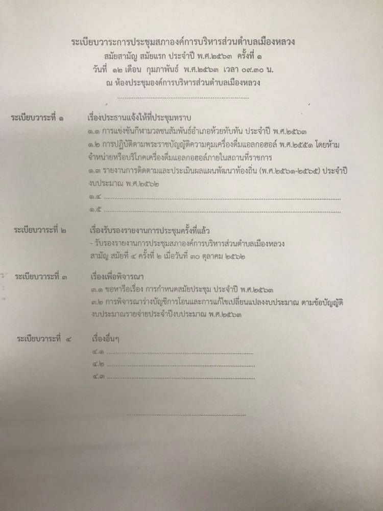 ขอเชิญร่วมรับฟังการประชุมสภาองค์การบริหารส่วนตำบลเมืองหลวง สมัยสามัญ สมัยที่ 1 วันที่ 12 กุมภาพันธ์ 2563 เวลา 09.30 น ณ ห้องประชุมองค์การบริหารส่วนตำบ