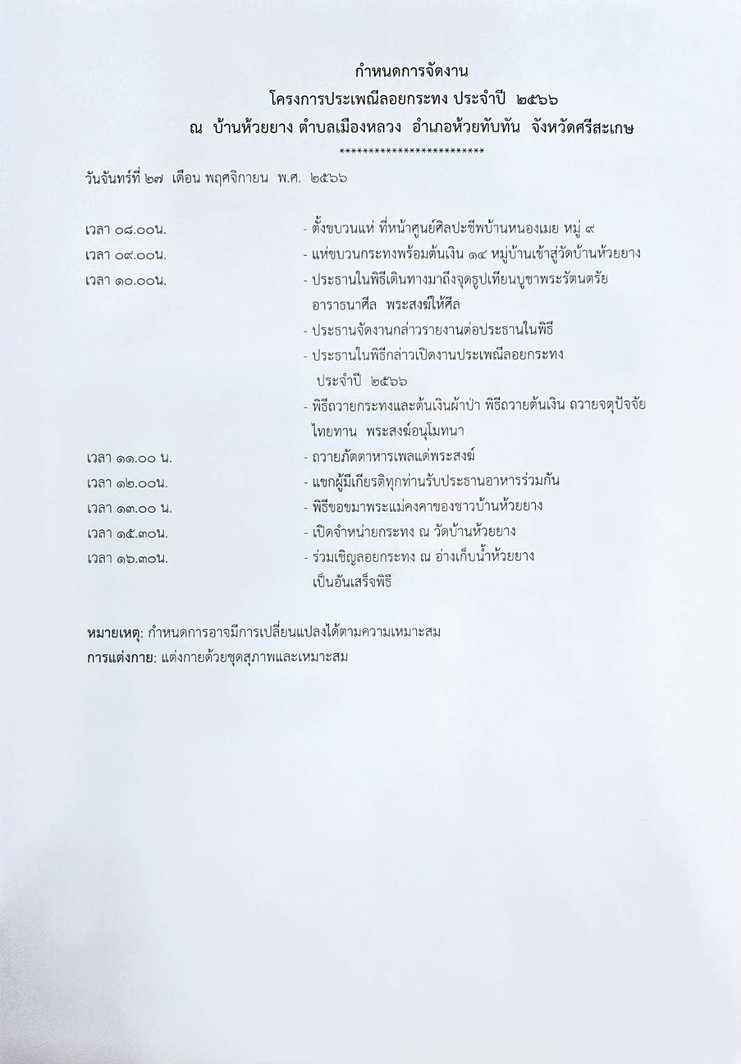 เชิญชวนร่วมงานประเพณีลอยกระทง ประจำปีงบ พ.ศ.2566