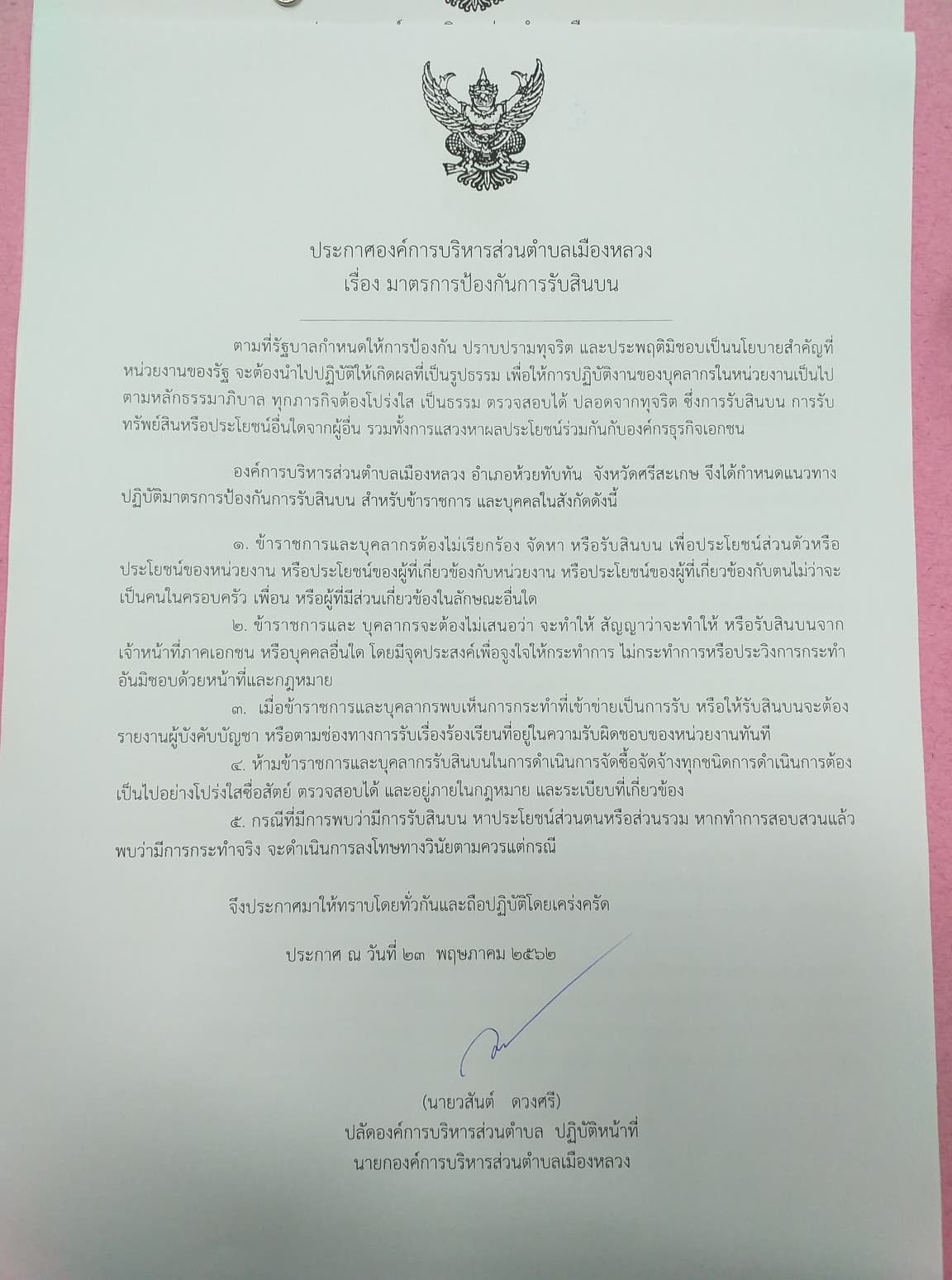 มาตรการการป้องกันการรับสินบน